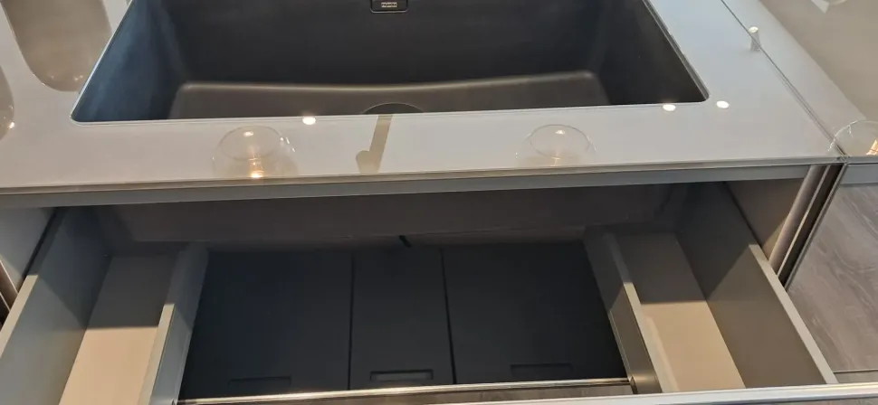 - Ti mostreremo che in questa cucina Lago è compresa nel prezzo anche la rubinetteria con miscelatore con doccetta, adatto a arricchire l’intera proposta grazie a design unico e assicurarti un flusso d’acqua sempre costante.