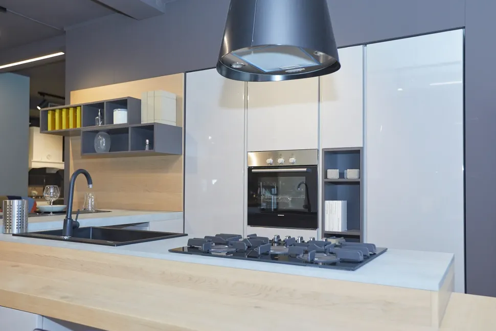 - Eliminare odori e fumi è la funzione fondamentale della cappa design, incorporata nella cucina Comp time 1 qui scontata.