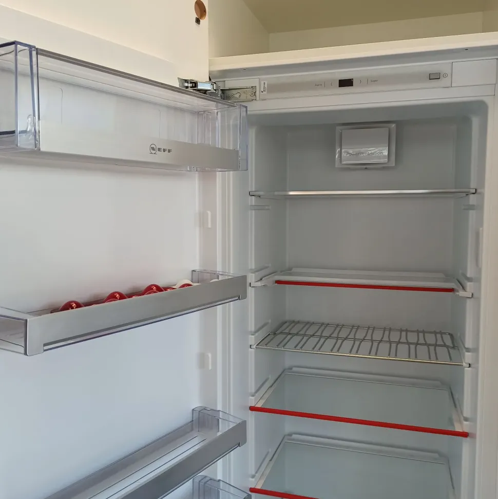 - Per essere totalmente funzionale, la cucina deve risultare completa di un frigorifero ampio che possa conservare i cibi, come questo ad incasso inserito nel modello Time.