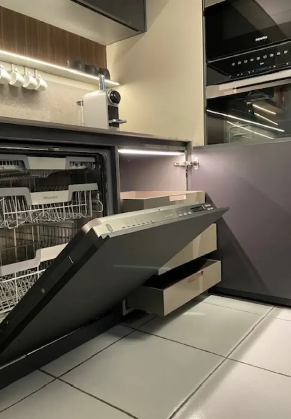 - La lavastoviglie comandi a scomparsa compresa nell’offerta è disegnata apposta per essere inserita nella cucina Cucina sign e per agevolare le consuete pratiche di pulizia delle stoviglie.
