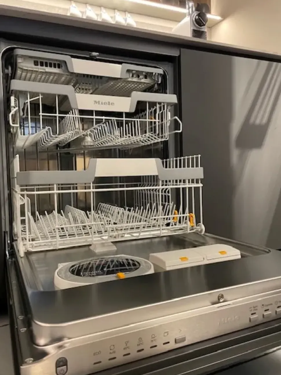 Lavastoviglie con cassetto 3D MultiFlex per avere più spazio per le posate, più informazioni e connessione in rete degli elettrodomestici con Miele@home e un’asciugatura sempre impeccabile: l’asciugatura AutoOpendi Miele. Lavastoviglie con sistema ad acqua pulita: consumi da 6 l nel programma Automatic e apertura e chiusura dello sportello molto leggere ComfortClose.