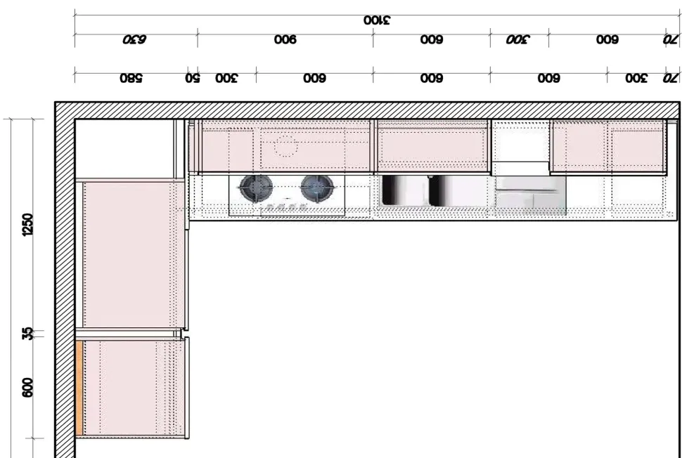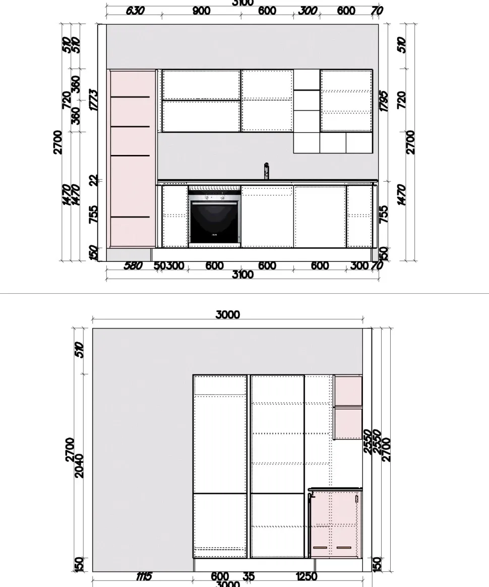 - In questa soluzione è inserito ampio frigorifero ad Incasso, fondamentale in ogni cucina con il fine di conservare al meglioi viveri.