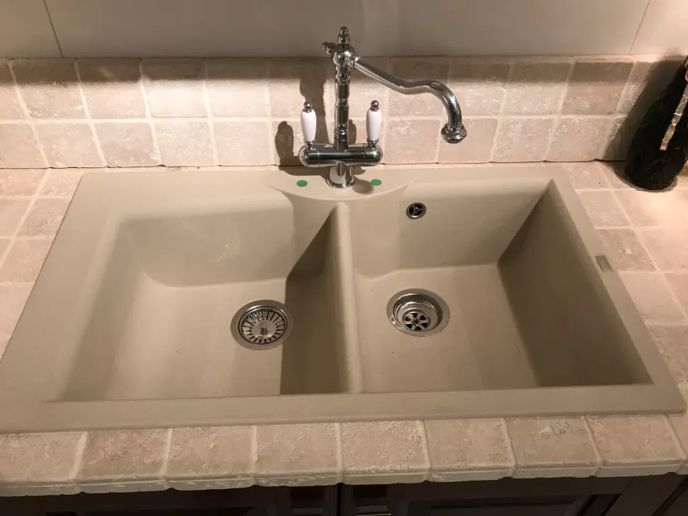 La cucina è completa di faretti sottopensile e super accessoriata al proprio interno con portaposate in faggio, pattumiera differenziata e tutte le chiusure ammortizzate. Il top e l’alzata sono in sassi di Piave, tozzetti di travertino che si abbinano perfettamente al legno noce massello.