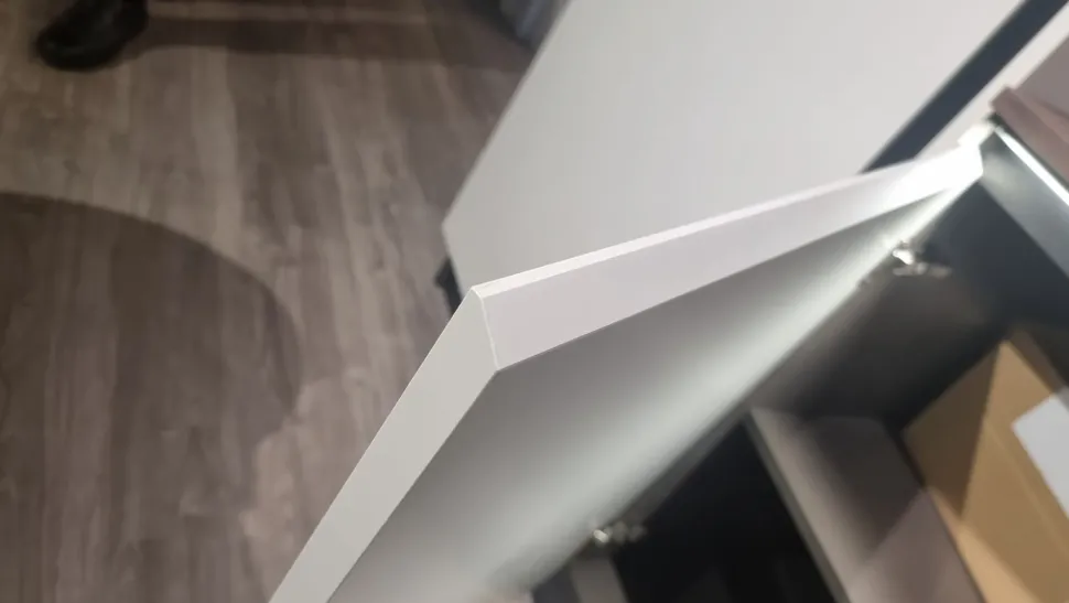 - È davvero peculiare il top cucina in laminato incluso nel prezzo Outlet, ottimo mix tra le doti di funzionalità e quelle di design: saprà resistere dopo anni al uso prolungato, pur rimanendo valido anche esteticamente.