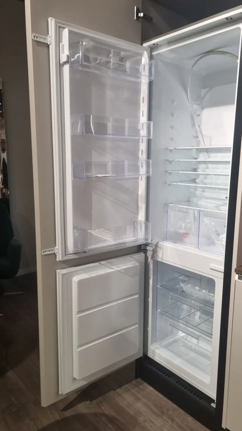 - Tutti i cibi, tra cui anche gli ortaggi e la frutta fresca, devono essere conservati in modo ottimale, quindi questa cucina prevede un frigorifero ad Incasso veramente ampio e funzionale.