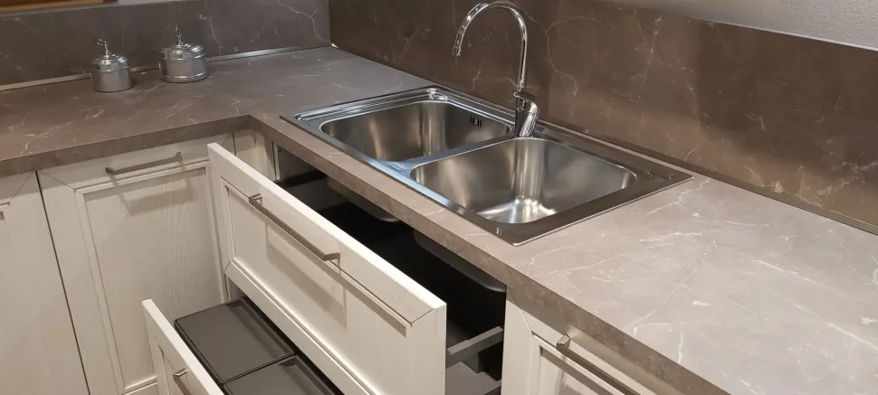 Arredo3 garantisce cucine di qualità elevata, tra cui la cucina Mod opera bianche ora in Offerta Outlet.