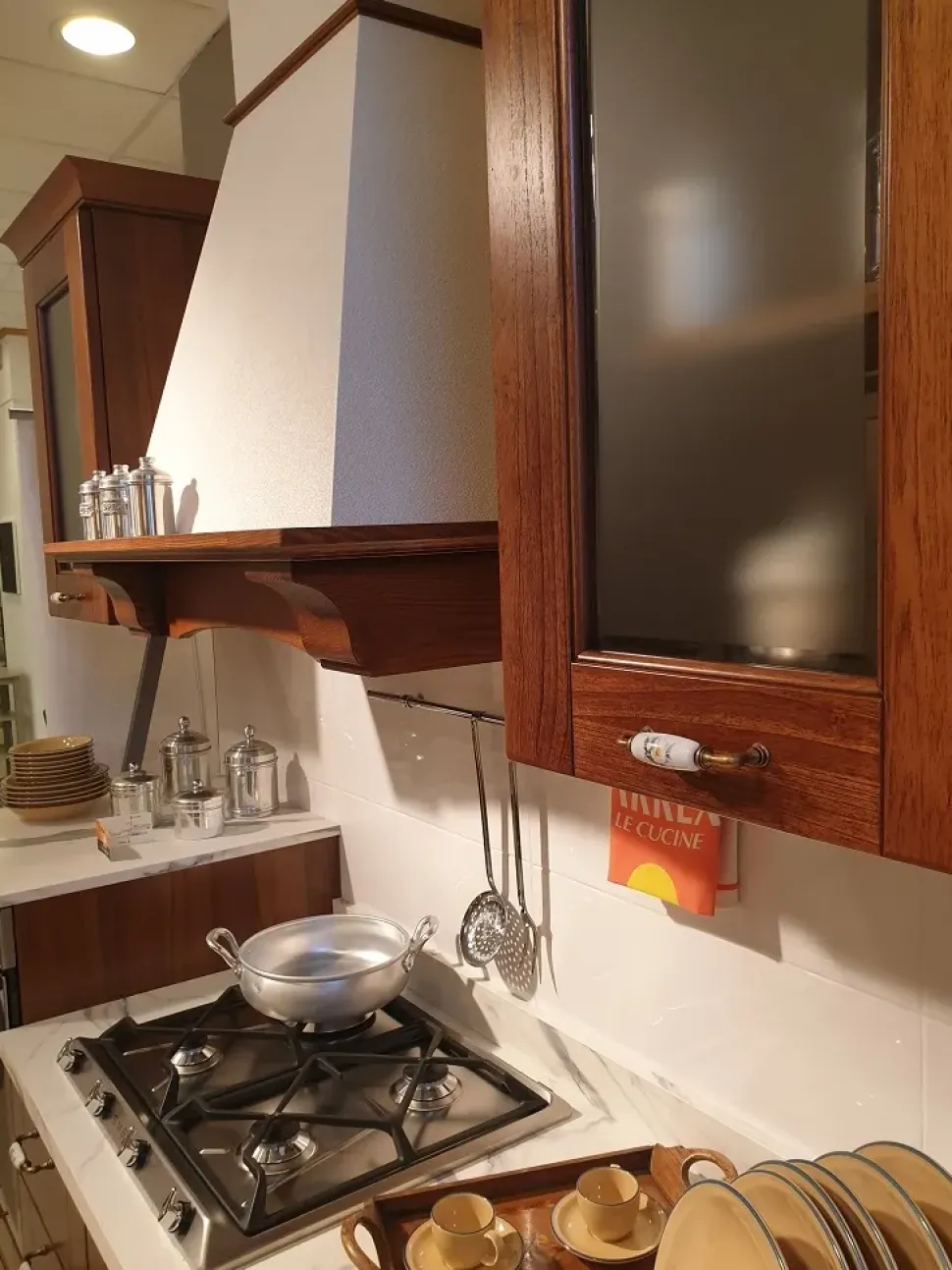 - In dotazione, con la cucina Nora legno, è presente altresì una cappa a parete di ottima fattura.