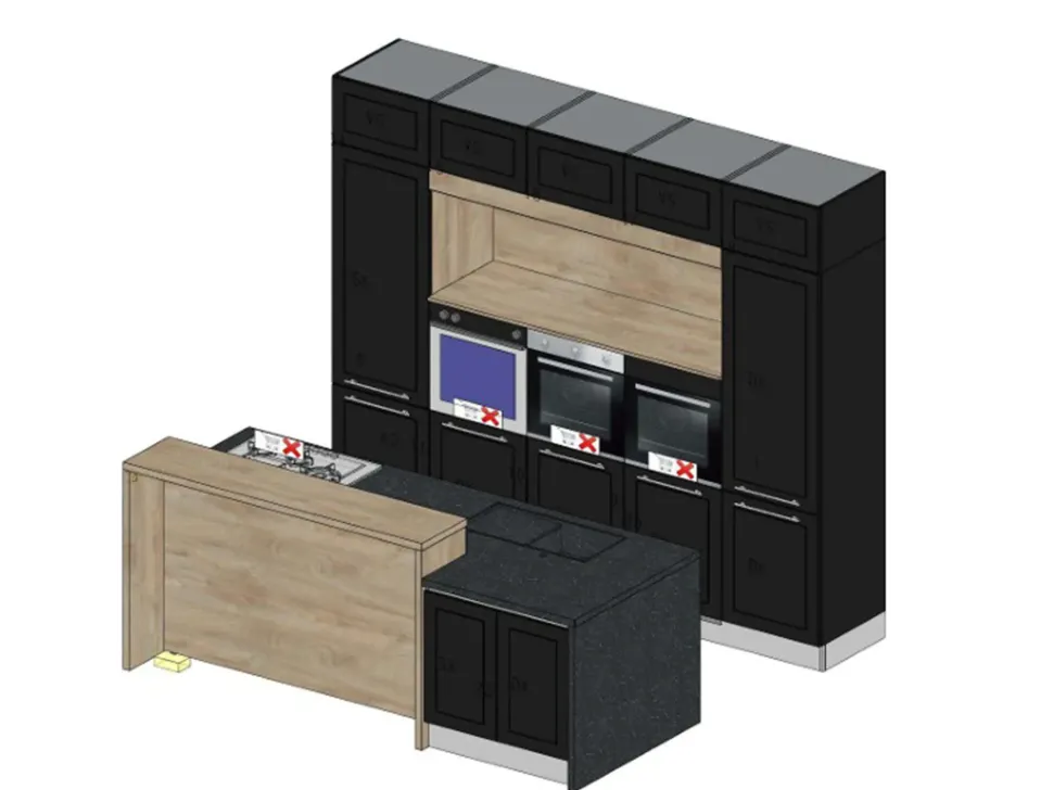 - Per questa cucina Giglio expo Moderna abbiamo pensato ad un frigorifero ad Incasso, ideale per conservare ogni giorno i piatti e i viveri, con attenzione verso consumi energetici bassi e rumore ridotto.