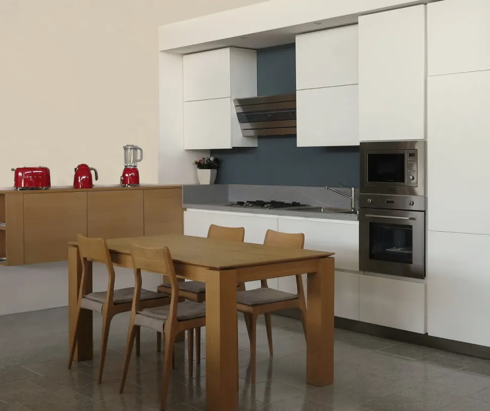 - Durata e solidità caratterizzano questo modello di cucina, in quanto realizzata in laminato opaco di pregio per garantirti il completo comfort.