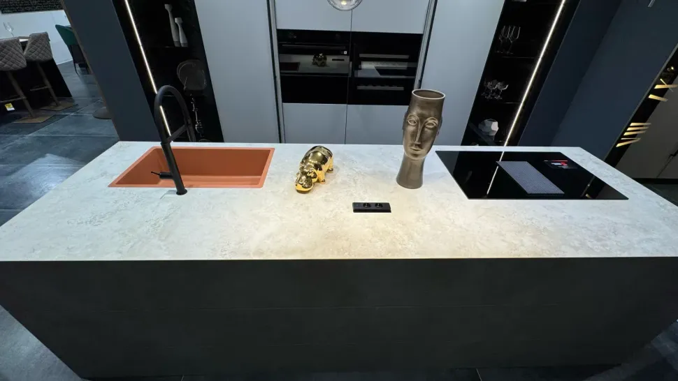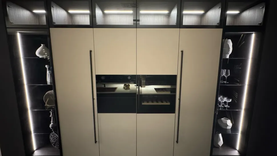 Stupenda cucina della prestigiosa azienda Armony, con ante Soft touch anti impronta , la cucina s’impreziosisce con il top in gres porcellanato dell’azienda Neolith resistente a graffi e qualsiasi shock termico, anche lo schienale è stato realizzato dello stesso materiale.