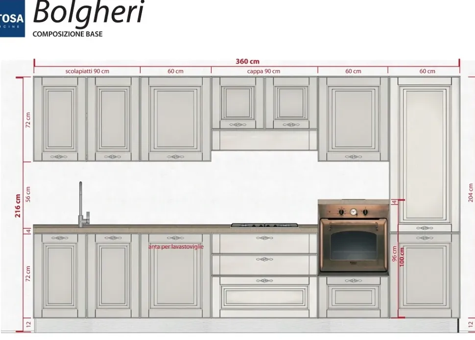 Le caratteristiche della cucina Bolgheri scontata 25%