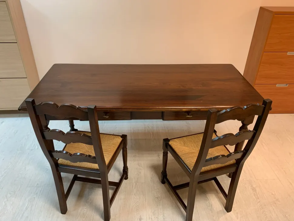 Tavolo TOSCANO in noce cantone con due cassetti e gambe tornite, L.170 P. 80 cm.