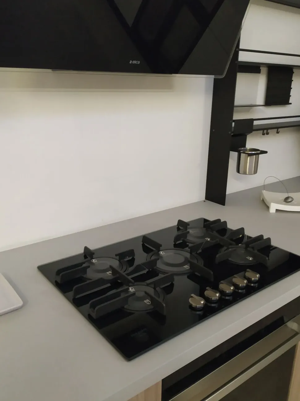 - Accessori inclusi come cappa a parete Elica, forno multifunzione Hotpoint, piano cottura a gas Hotpoint e rubinetteria miscelatore.