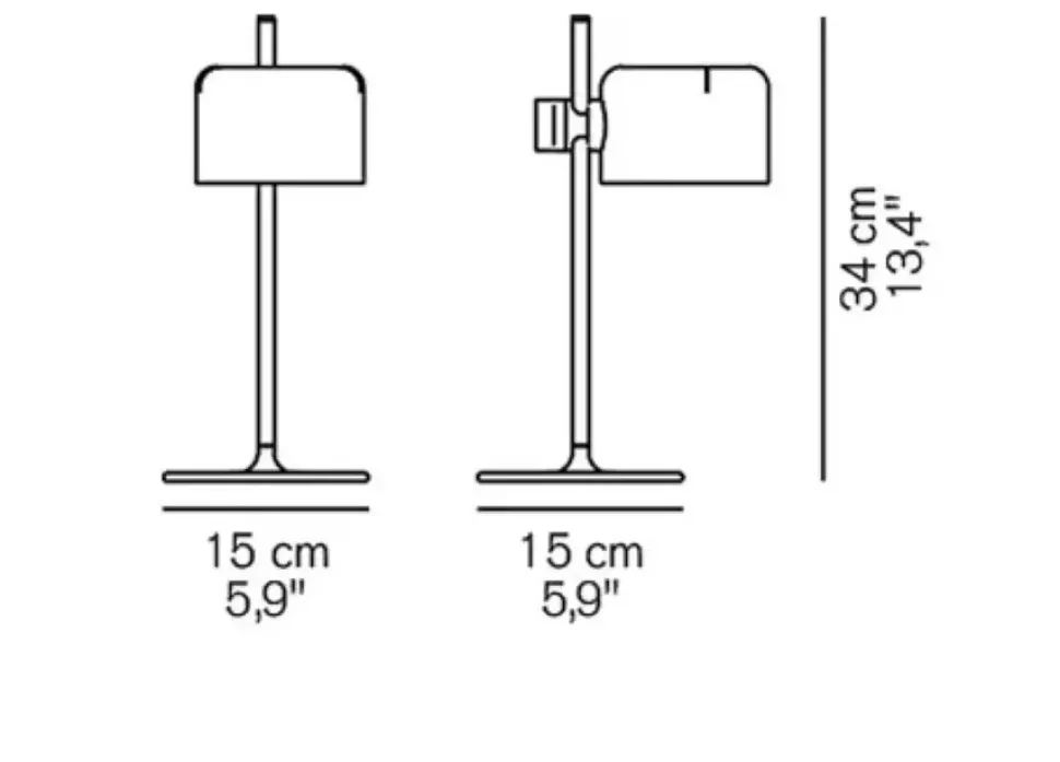 Lampada da tavolo con speciale riflettore semicilindrico in metallo verniciato a fuoco. Coupé ha ottenuto, nel 1968, lo International Design Award dell American Institute of Interior Designers, a Chicago. Fa parte della collezione permanente del MoMA di New York e del Neue Sammlung Museum di Monaco di Baviera.