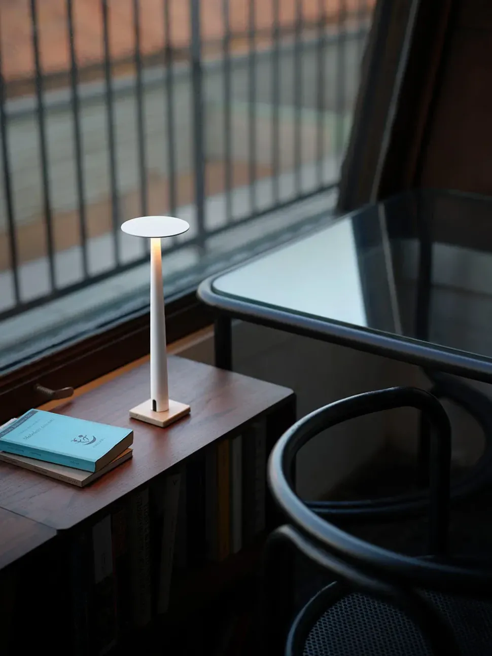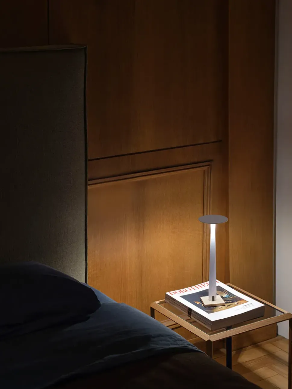 PORTOFINO è una lampada da tavolo sottile, elegante e leggera. Portatile e ricaricabile. Un design contemporaneo e versatile. Il risultato di un processo guidato dalla ridefinizione dell’architettura del prodotto, dalla ridistribuzione dei componenti e dalla loro ottimizzazione in termini di volume ed efficienza. Realizzato in alluminio e, nella versione più elegante, con base in marmo in diverse essenze. Proposta in BIANCA/TRAVERTINO e NERO/SAHARA NOIR