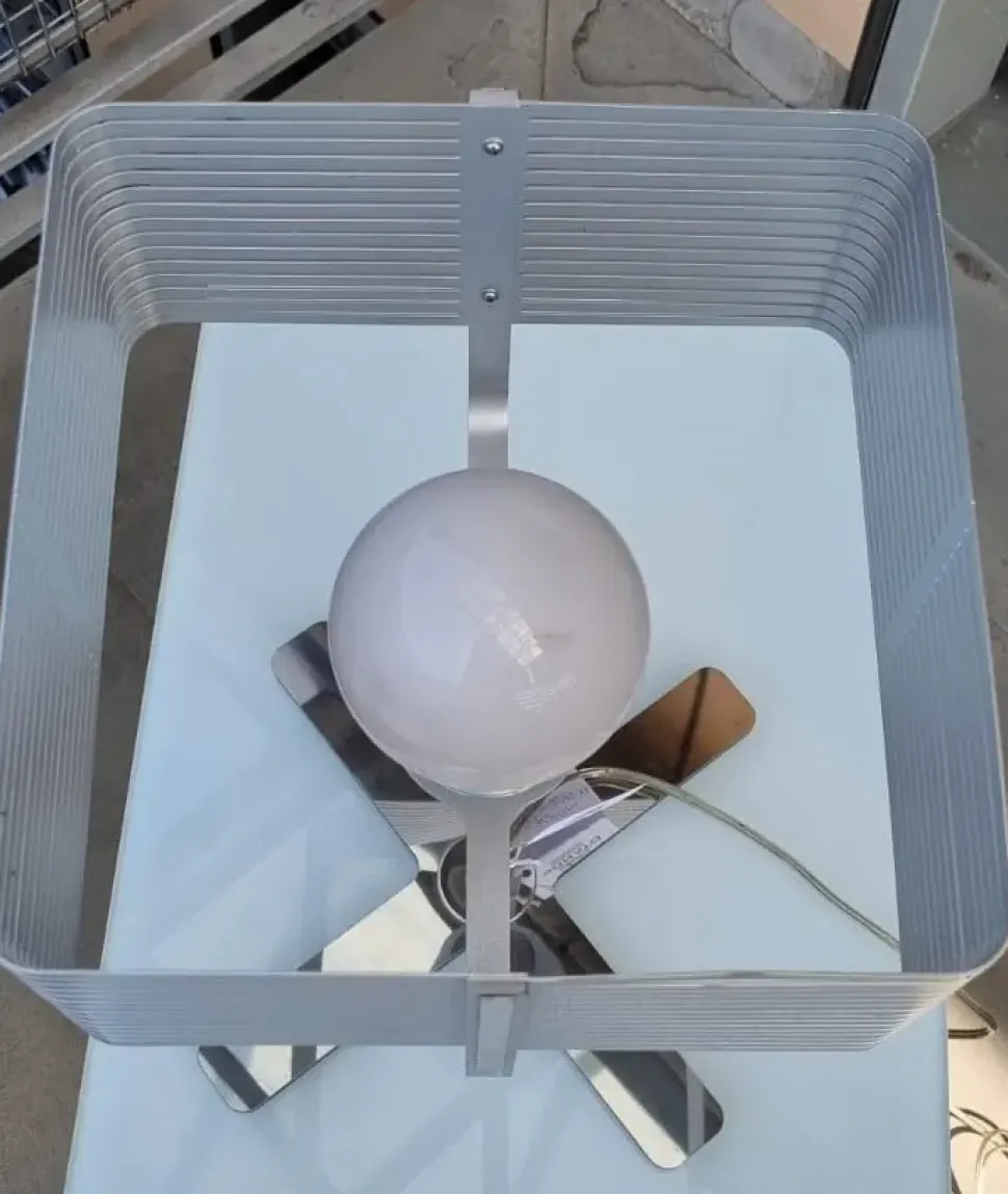 Lampada da tavolo AndCosta modello IX Table con base in acciaio.