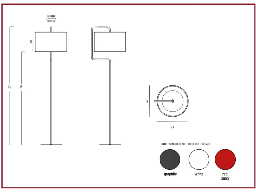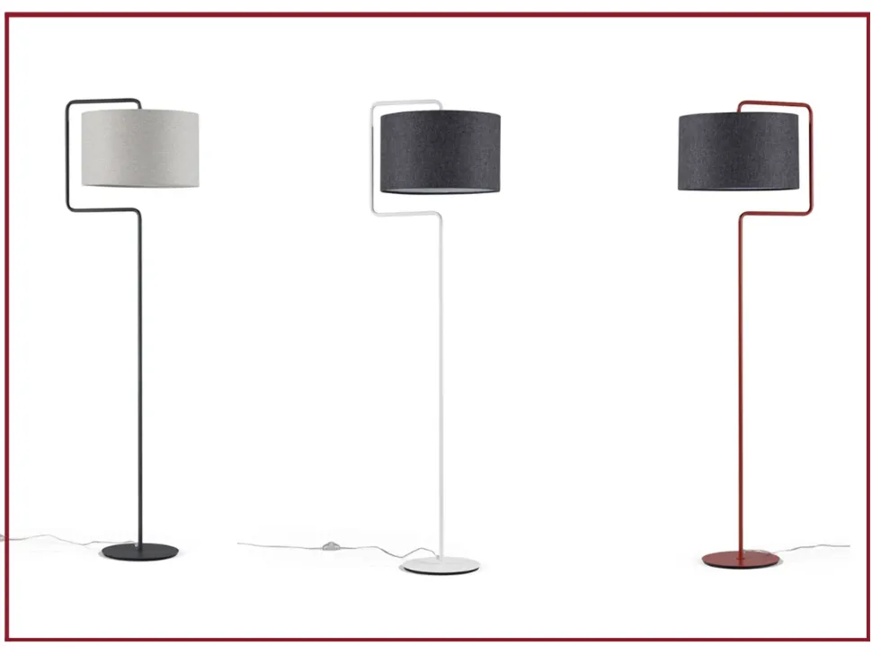 Struttura in metallo colorato, design essenziale e paralume in tessuto. MORFEO è la lampada da terra che accende le tue serate.