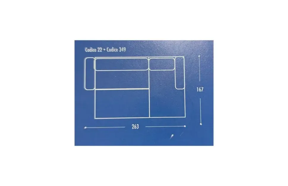 Dimensioni: 263 cm (lunghezza) x 167 cm (profondità) x 79/96 cm (altezza)