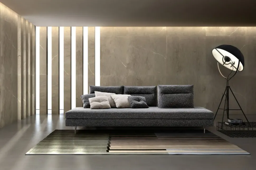 - L’imbottito Loft qui visibile, ovvero uno dei modelli che rientrano nella linea di imbottiti di lunghezza che va da 326 a 350 cm, è ideale per ambienti di svariate dimensioni; i mobili devono valorizzare gli spazi indoor esaltando anche le doti pratiche degli stessi: quindi è fondamentale selezionarli anche a seconda delle loro dimensioni ed alla disposizione degli ambienti in cui saranno collocati.