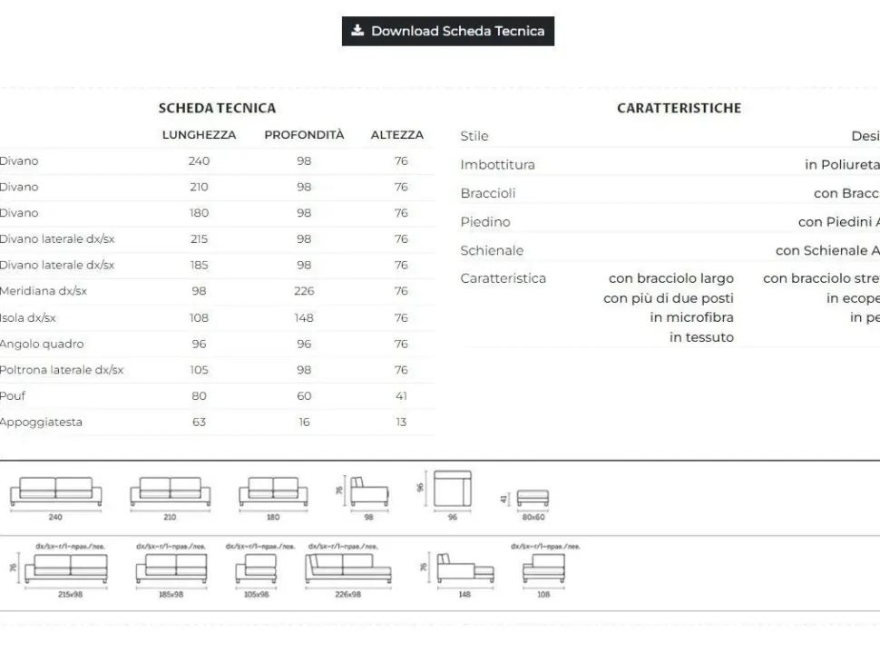 Per la versione in altre dimensioni, tessuti o pelli o su misura RICHIEDERE PREVENTIVO