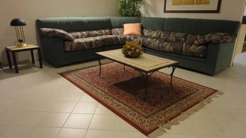 I cuscini della seduta, invece, sono interamente in tessuto.