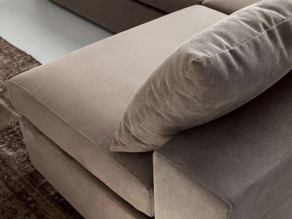 La grande versatilità di questo modello 3 posti maxi apre un ventaglio di combinazioni grazie all’accostamento del pouf jolly da utilizzare come penisola terminale.