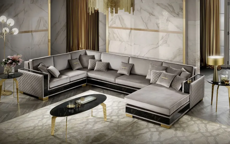 in vetro effetto marmo composto da: 2 posti, angolo, 3 posti e chaise longue