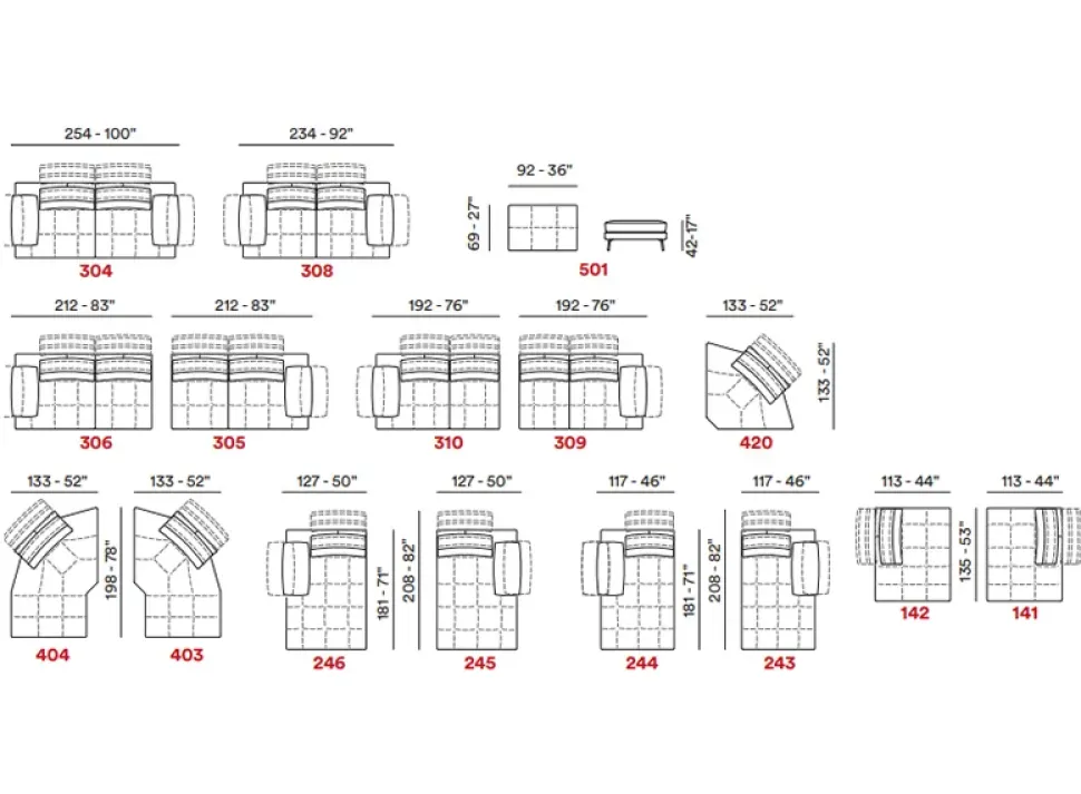 - Gli arredi, tra cui pure gli imbottiti, non devono mai risultare ingombranti, prima di tutto per lo spazio che occupano all’interno dei locali; infatti è tanto importante valutare con cura anche le loro dimensioni: il modello di Divano mostrato in foto fa parte della serie di imbotti del brand di lunghezza che varia da 226 a 250 cm ed è dunque ideale per uno spazio di svariate volumetrie.