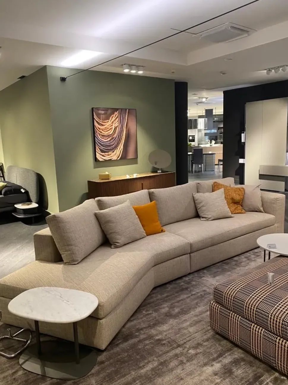 Il divano da un idea di living meno schematica e formale, invece più aperta e accogliente. Struttura in tessuto rubens categoria F.
