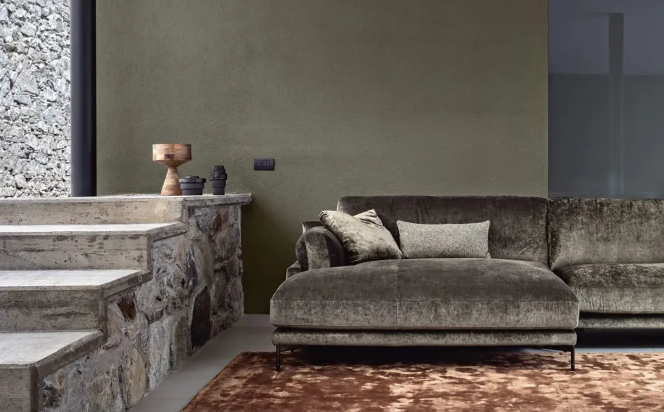 Sedute e schienali imponenti e braccioli dall effetto morbido e scomposto sono abbracciati da una struttura geometrica e lineare, conferendo al Cadorna una sensazione di avvolgente relax.