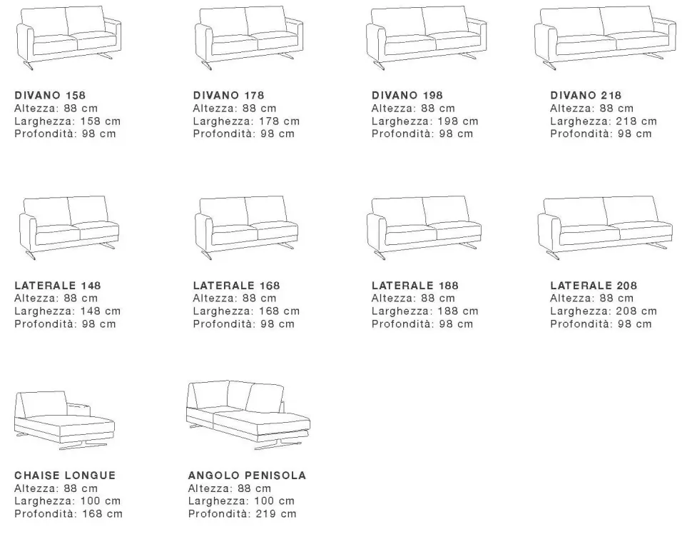 - Tipologia divani con penisola: Grazie alla presenza della penisola, il divano Gass offre un’ampia superficie di appoggio per le gambe, permettendo di rilassarsi comodamente.