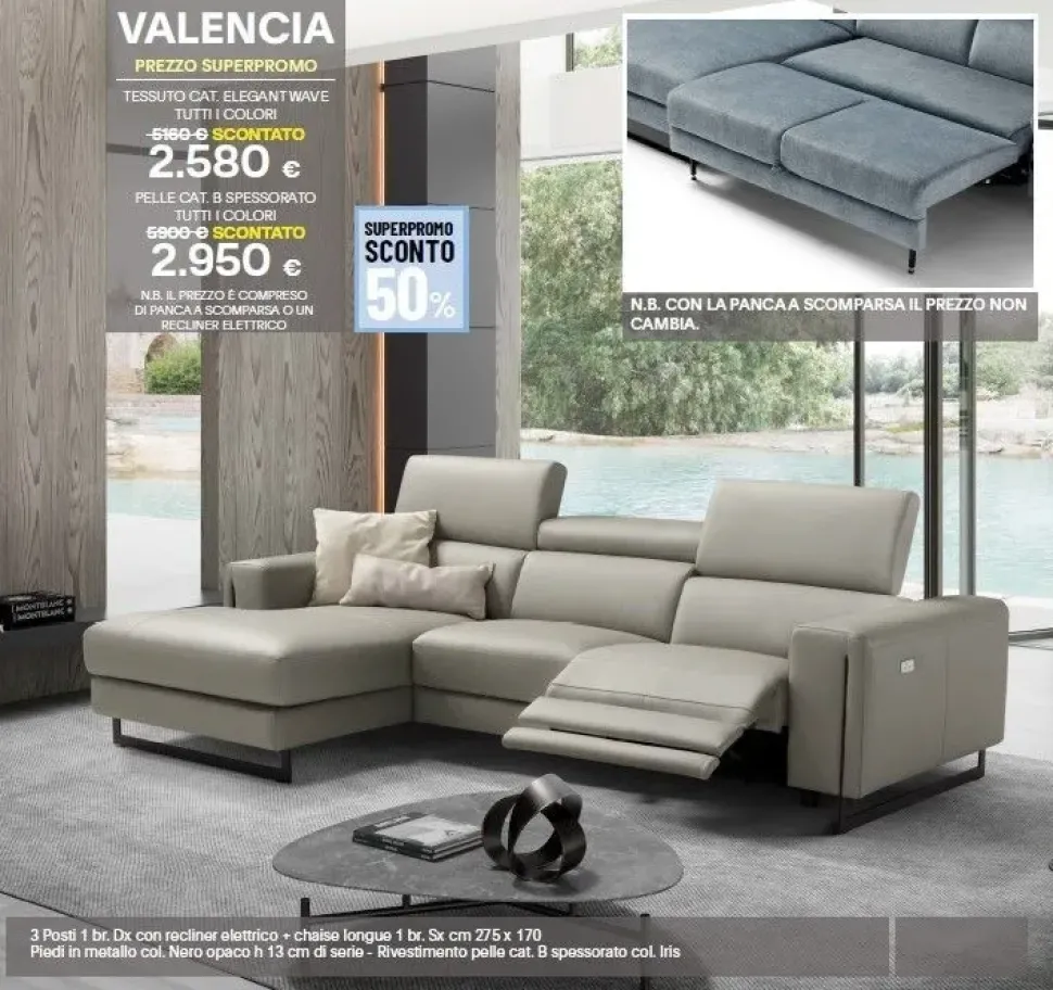 Divano con penisola in Pelle Sofangel a prezzo ribassato