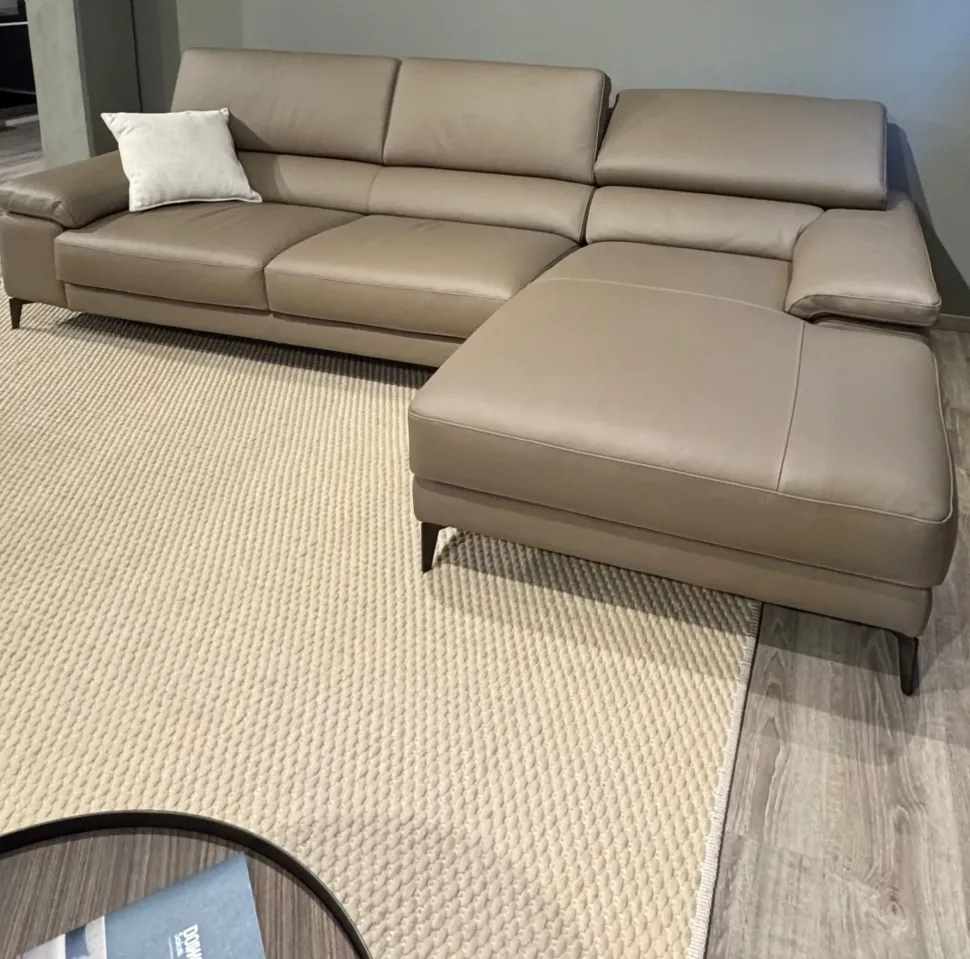 Al fine di organizzare al meglio lo spazio nel living, è bene scegliere gli arredi a seconda di forma e dimensione delle stanze, valutando perciò anche il tipo di imbottito che è per te tra divani, poltrone, divani letto e tanto altro; il modello mostrato in foto appartiene alla collezione di con penisola di ottima fattura firmati dal brand. All’interno del tuo living trascorrerai momenti di riposo nonché ospiterai familiari e amici per qualche ora in compagnia: è imprescindibile che tutta la famiglia e tutti i possibili ospiti si sentano comodi grazie a imbottiti versatili e comodi; prima di scegliere una delle nostre molteplici composizioni, considera che il modello qui presente è un 3 posti. Se vuoi arredare il tuo living seguendo un appeal attuale, prediligi imbottiti in tonalità sgargianti, al contrario se desideri creare un’ambientazione in stile classico con uno spiccato senso di accoglienza, potrai trovare rivestimenti nelle tonalità calde o intermedie: l’imbottito Paris è rivestito in pelle, materiale perfetto per procurarti morbidezza negli anni, nonchè di completare il living anche dal punto di vista estetico. Gli ambienti interni occorre che siano conformi alle richieste di chi li vive e i mobili, tra cui anche gli imbottiti, non devono mai essere ingombranti; il modello qui presente appartiene alla fascia di imbottiti di lunghezza che va da 276 a 300 cm, risultando così ideale per un interno di molteplici misure. L’imbottito presentato in quest’offerta, sarà in grado di abbinare doti di funzionalità e stile, definendo al tempo stesso il mood degli interni: sceglilo se adori le peculiari atmosfere che connotano un living in stile moderno. Se vuoi ordinare questo imbottito nel nostro Outlet, dovrai prendere in considerazione anche il prezzo della spedizionetrasporto escluso per questa proposta.