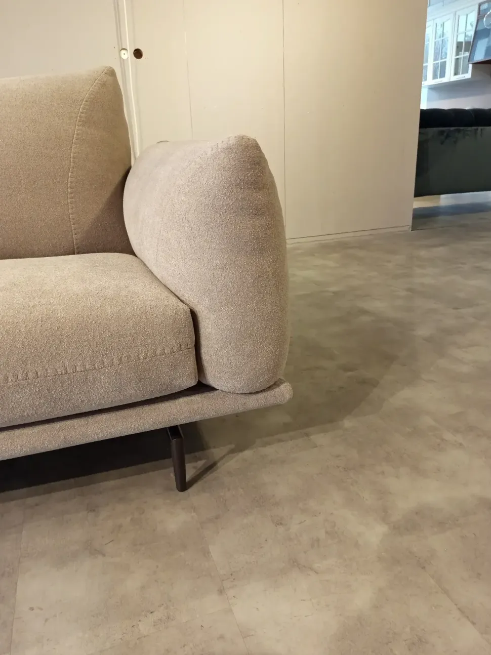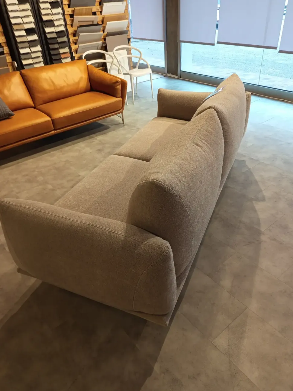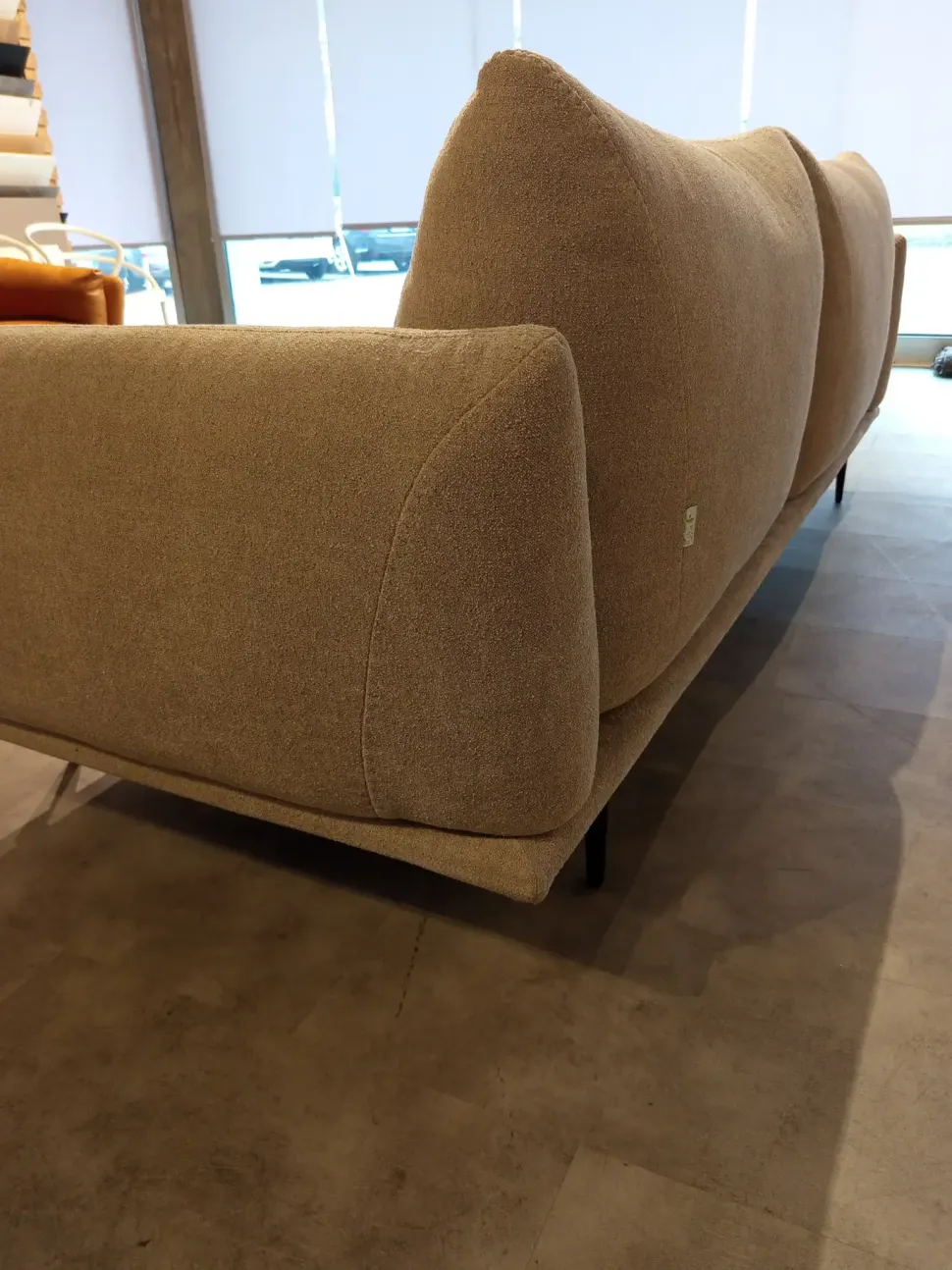 Divano Calia Italia Mod. Dragees in tessuto Riccio Tortora L235 P95 H schienale 90 H seduta 45 di altissima qualità e design. Pezzo unico. Prezzo scontato. Visionabile su appuntamento presso il nostro showroom.