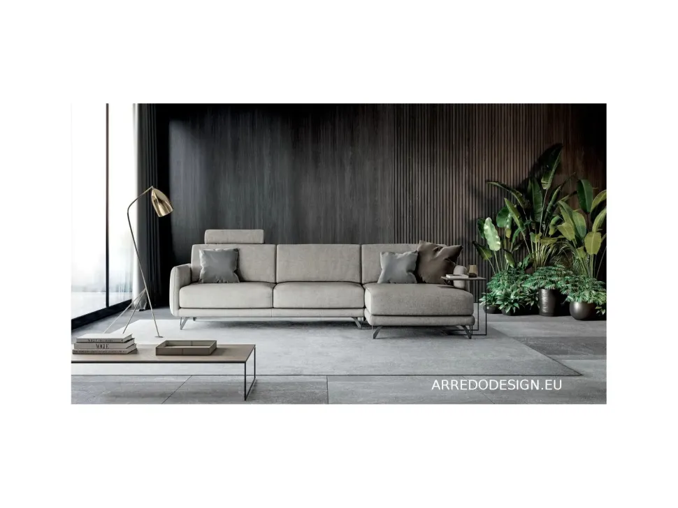 Il prezzo esposto è per la composizione come in foto Dx o Sx con dimensioni di cm 315×170 con 1 poggiatesta incluso, rivestimento tessuto a scelta in categoria C.
