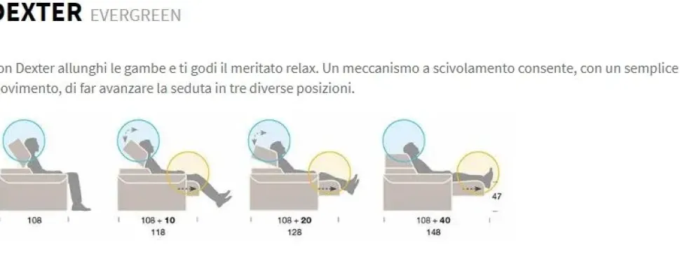 - Spesso la scelta di imbottiti per il proprio living corre il rischio di diventare eccessivamente complessa, poiché le diverse variabili da valutare sono molteplici: linee, volumi, dimensioni e stile sono alcuni di essi; grazie al modello Dexter con movimento relax Felis potrai ultimare perfettamente uno spazio di svariate misure con la sicurezza di avere sempre a disposizione una seduta accogliente e confortevole per i tuoi momenti di riposo.