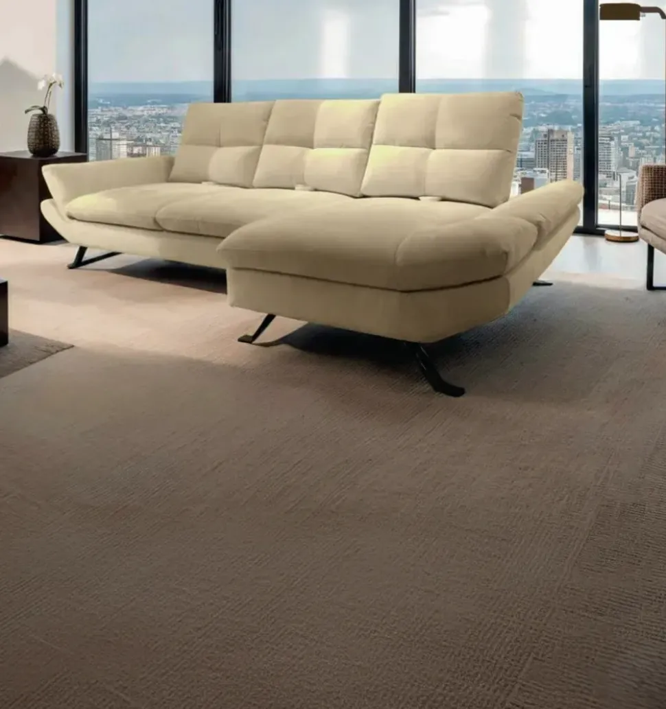 Con le sue generose dimensioni di 263×110/140x90h cm, Extro offre ampio spazio per tutta la famiglia, trasformandosi con facilità da un comodo divano lineare a una chaise longue accogliente. Il suo design contemporaneo è esaltato dal basamento in metallo verniciato nero, che conferisce leggerezza e un tocco di eleganza industriale, rendendolo un vero e proprio complemento d’arredo di tendenza.