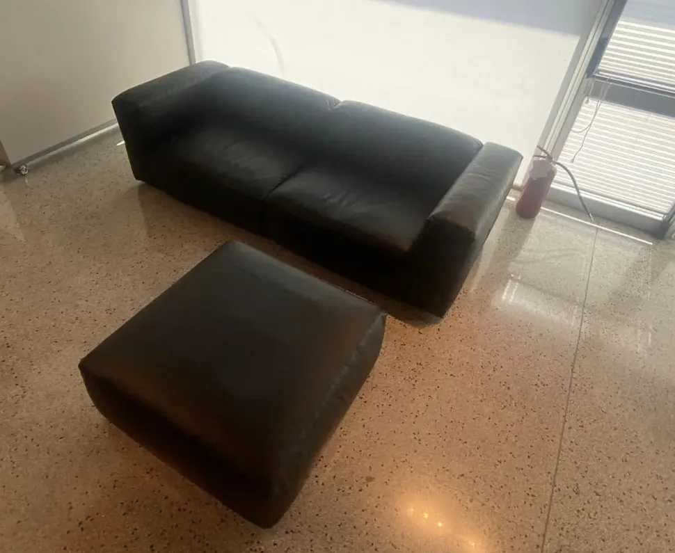 POUF IN PELLE NERA 95 X 95 ALTEZZA 38 CM
