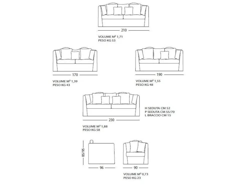 QUESTO DIVANO HA LA SEGUENTE MISURA LUNGHEZZA 210 CM PROFONDITA 96 CM ALTEZZA DA TERRA FIN SOPRA SEDUTA 49 CM