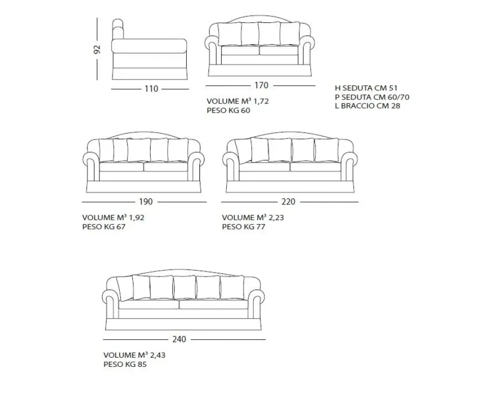 - Modello:Divano portovecchio vari rivestimenti piuma
