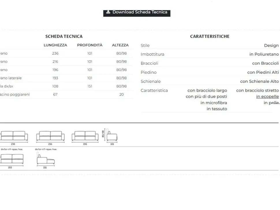Per la versione in altre misure, altra pelle o tessuto sfoderabile RICHIEDERE PREVENTIVO.