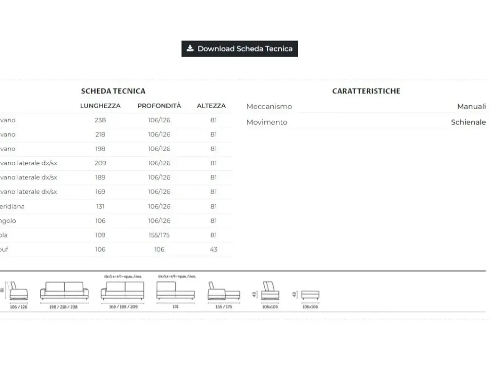 Per versioni su misura o altre dimensioni con tessuti o pelli a scelta RICHIEDERE PREVENTIVO.