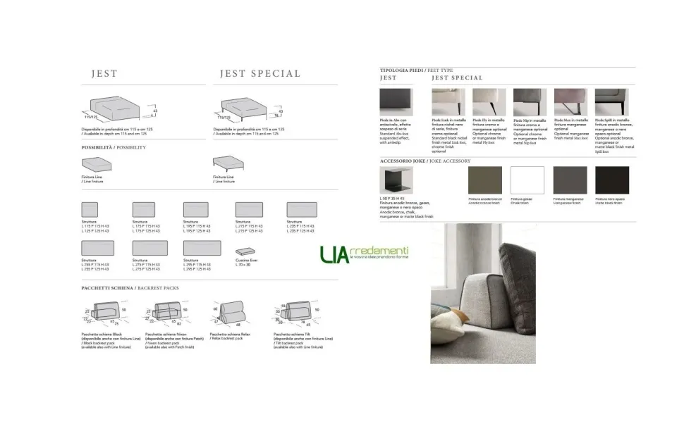 Vi presentiamo il divano Jest ad angolo componibile composto da 1 modulo L 175 x P. 125 x H 43/93 cm e 1 modulo L 195 x P 125 x H 43/93 cm + 3 pacchetti schiene modello Tilt Il costo si riferisce alla categoria A .Finitura Line a richiesta .