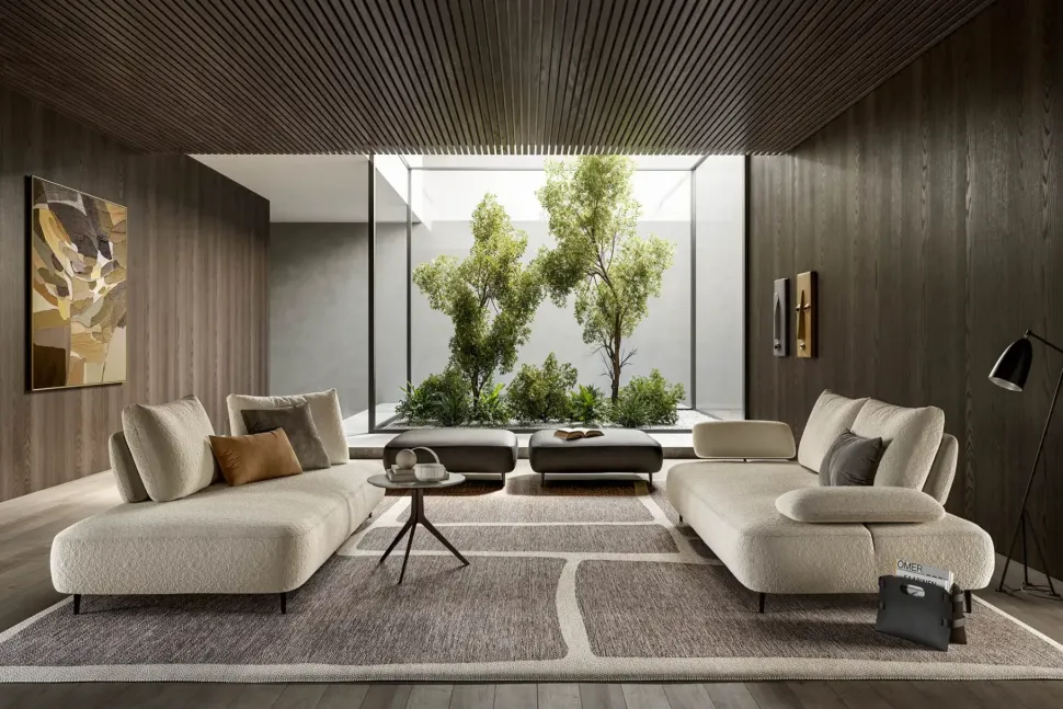 Il divano FANNY unisce stile e funzionalità, adattandosi con eleganza a ogni ambiente grazie ai suoi movimenti regolabili e alle finiture di pregio.
