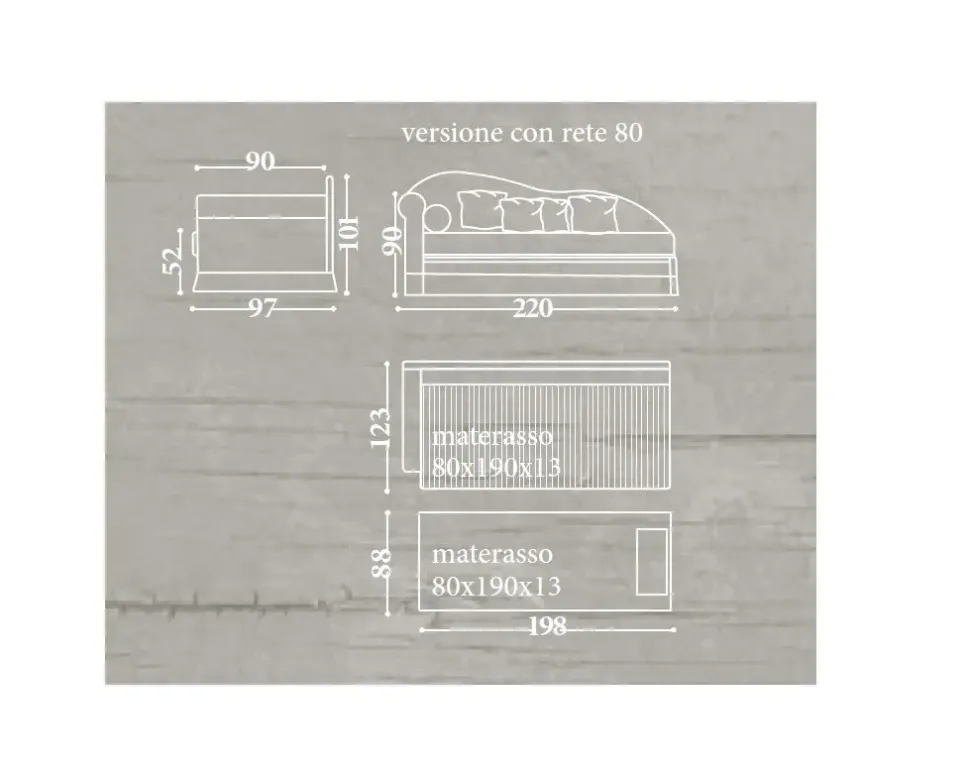 Divano letto completo di materassi e coperte: scheda tecnica