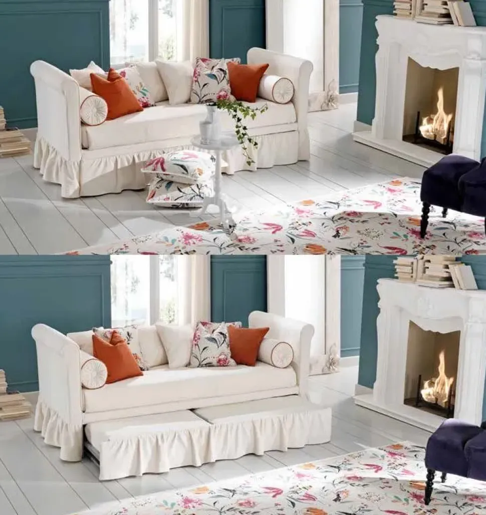 - Che tu voglia ammobiliare un soggiorno di ogni sorta, che sia di dimensioni più o meno estese, Divano letto duchessa italiana presente in foto saprà trovare la soluzione adatta a te, confermando peculiari atmosfere in stile shabby shic che riflettano la tua personalità.