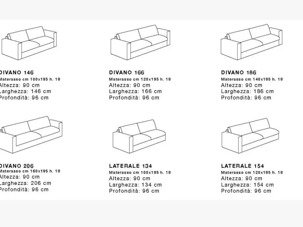 - Gli ambienti interni occorre che siano conformi alle necessità di chi li vive e i pezzi di arredo, tra cui anche gli imbottiti, non devono mai risultare d’intralcio; il modello qui presente appartiene alla fascia di imbottiti di lunghezza che va da 201 a 225 cm, risultando così ideale per un luogo di molteplici volumetrie.