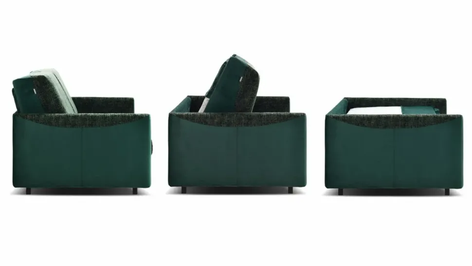 Twister, il tre posti di puro comfort che, con un solo twist, si trasforma in un letto singolo senza occupare spazio aggiuntivo. Questo meccanismo, unico nel suo genere, consente di convertire Twister in un letto singolo con una rapida rotazione dello schienale su se stesso: non ci sono complicazioni o ingombri aggiuntivi, basta ruotare lo schienale e il divano si trasforma magicamente in un letto pronto all’uso.