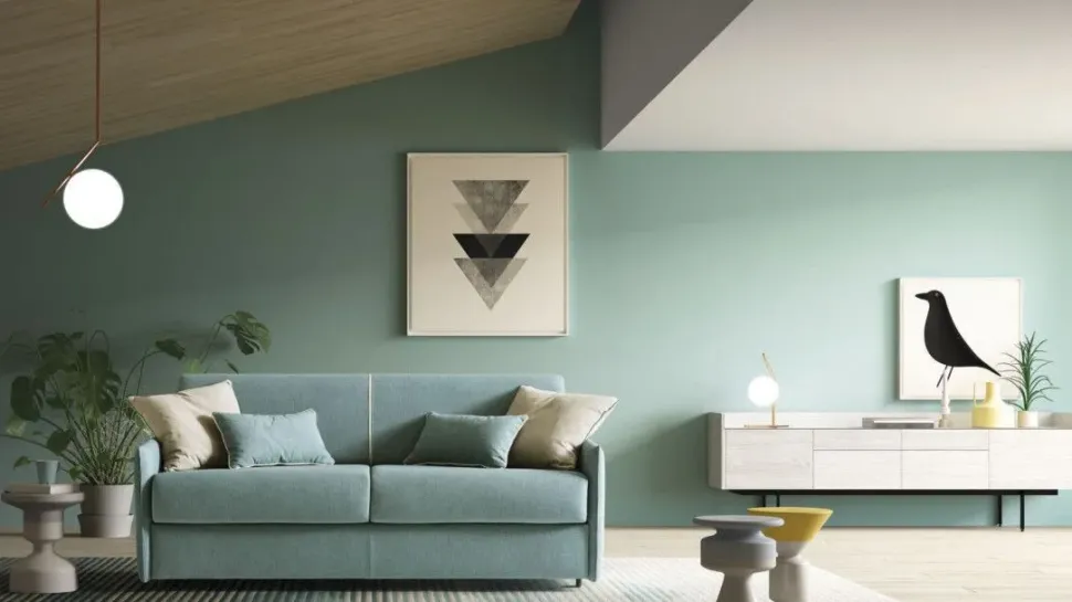- Con il fine di organizzare al meglio lo spazio nel living, è sempre meglio scegliere gli arredi in base a forma e dimensione dei locali, valutando quindi anche la tipologia di imbottito che è per te tra divani, poltrone, divani letto e tanto altro; il modello presente in foto appartiene alla collezione di divani letto di grande qualità firmati dal marchio.