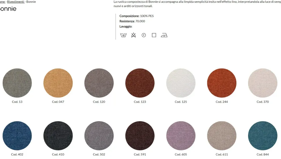 Rivestimento tessuto Cat B sfoderabile e lavabile.